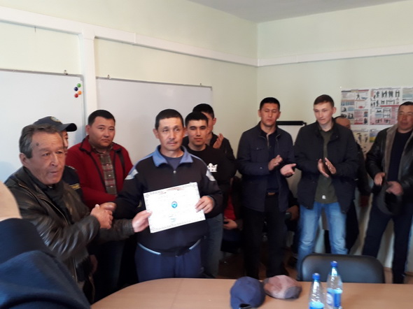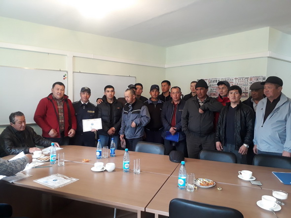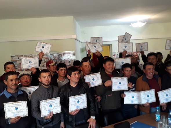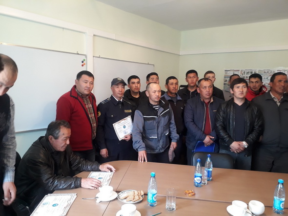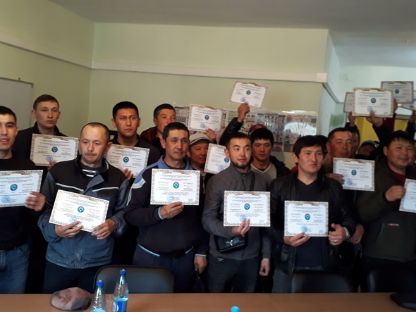 Процесс обучения сотрудников ОсОО «Алтын-Альянс» на месторождении «Джеруй» в Таласской области и вручение сертификатов.